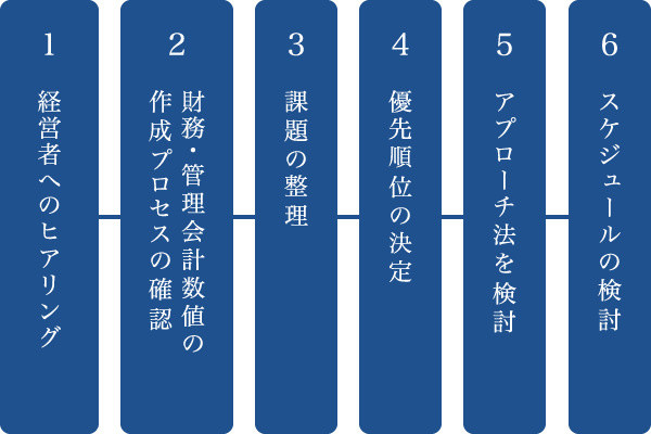 決算書などの過去の会計データを利用し、客観性が担保された現状分析を行います。